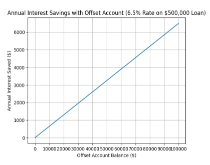 Offset benefits are more apparent with increased interest rates. For example, by keeping a balance of $50,000 in an offset account with an interest rate of 6.5 per cent, one is able to save about $3,250 per year on interest.